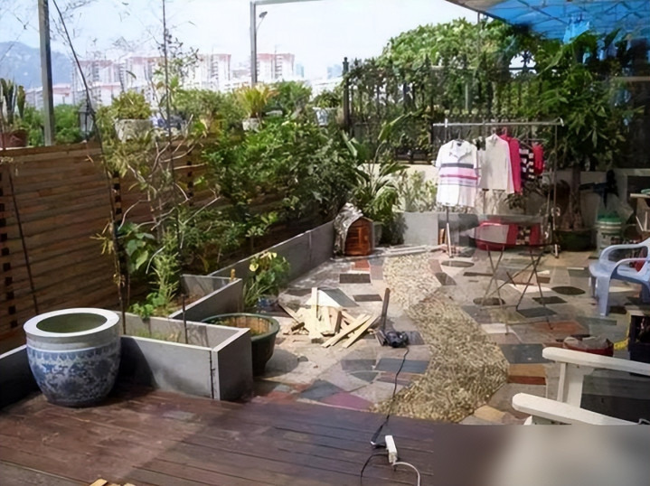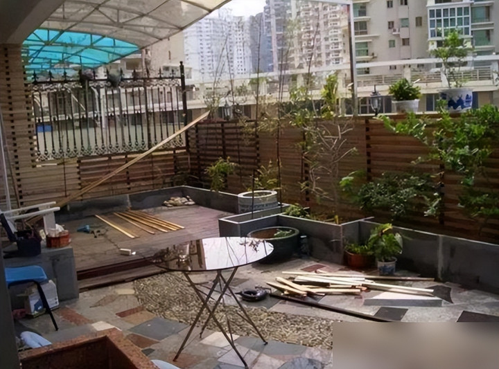 花几千块铺上防腐木,砌一圈红砖花坛,平平无奇的混凝土平台就能变成会呼吸的空中庭院。