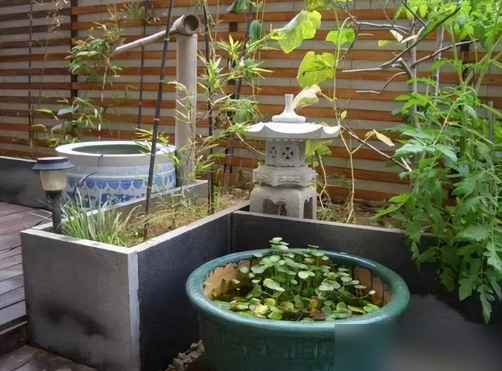 见过用旧石磨造流水景的,把老家竹筒改造成水龙头的,甚至拿红砖围个花坛种小葱。