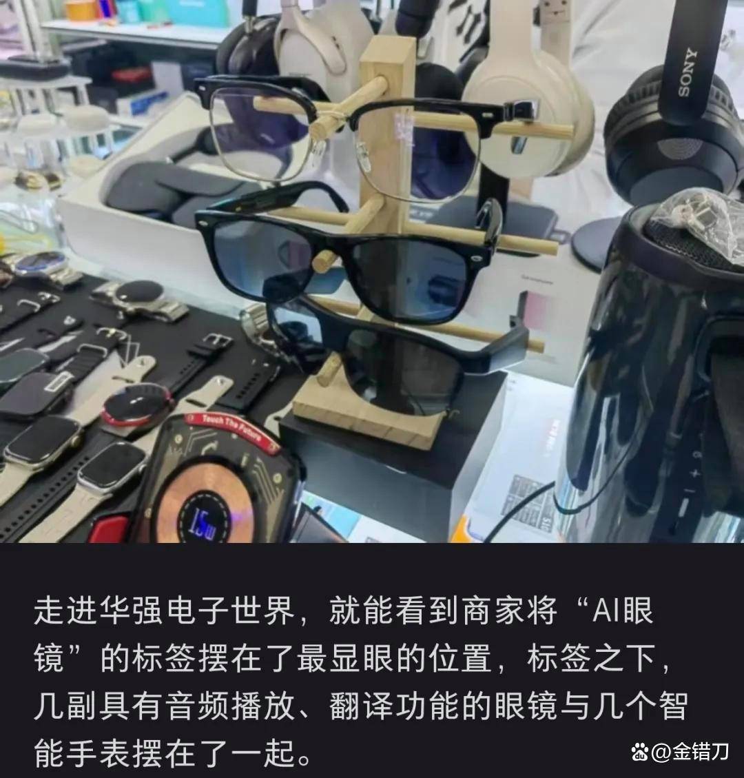 最老的赛格通信市场,每走几步就能看到最显眼的柜台上摆着一排AI眼镜;在华强电子世界二店、华强时尚数智中心等新市场,AI眼镜已经成了各大档口的标配产品。
