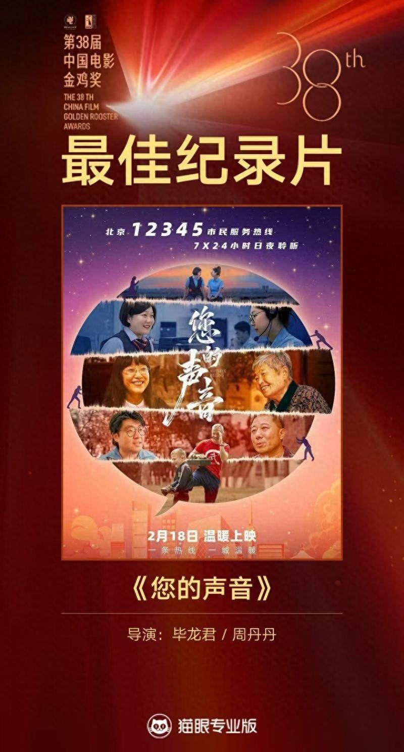 11月15日,接诉即办主题纪录电影《您的声音》获得第38届中国电影金鸡奖最佳纪录片奖。